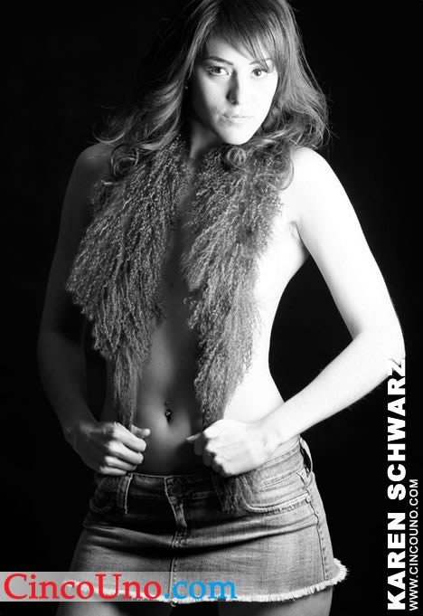 Espectacularmente bella, no caben otras palabras para describir a la modelo y reina de belleza Karen Schwarz. Como modelo, ella ha trabajado para las mejores agencias del país haciendo desde fotografía y desfiles, hasta comerciales de TV. Ha sido Chica21 y fue coronada como Miss Perú Universo 2009.